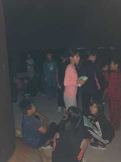 星座や夜景を展望して、各班ごとに反省会をしています。