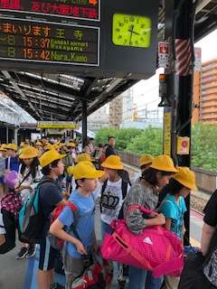 予定通り新今宮駅に着きました。15時36分発の電車で桃谷駅へ向かいます。学校到着は、予定通り16時前になると思います。全員元気です。