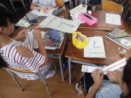 子どもたちは、いつも通りの活動で、素材をもとにいろいろと考えをふくらませ、自分なりの考えをそれぞれにまとめたり、交流したりしていました。