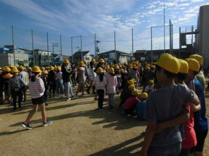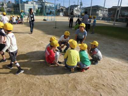 今朝は、集会委員会によるゲームを運動場で行いました。