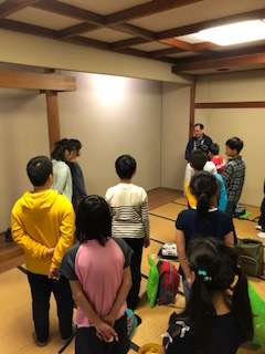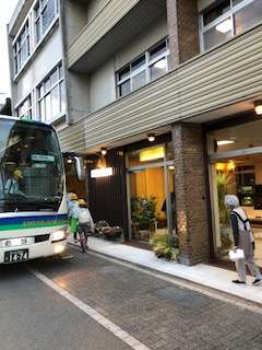 旅館の吸霞園に着きました。全員元気です。大きな声で挨拶をすることができました。