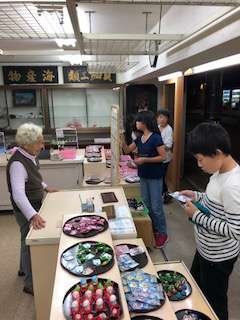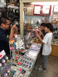 あちこちのお店をのぞいて、おみやげを選んでいます。
