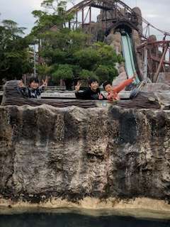 急流すべりは、余裕で乗っています。