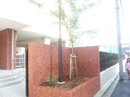 先日、桜(ソメイヨシノ)の樹が一本だけ植えられていた玄関の植え込みに