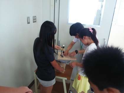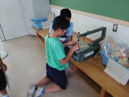 5年生は、「糸のこのドライブ」ということで、図工室で糸のこぎりを使って工作をしていました。