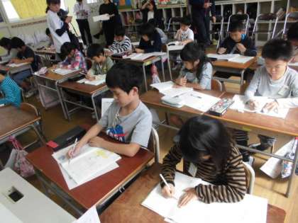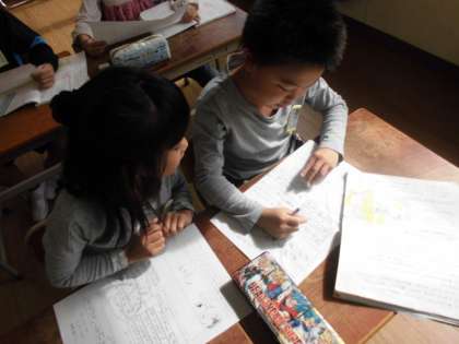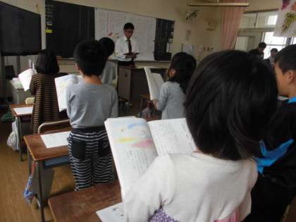 子どもたちは、よい姿勢でしっかりとした音読をしたり、自分の考えを書いてまとめたり、意見を交流したりしていました。