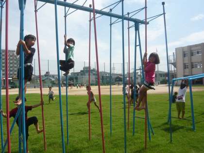 運動場の一部芝生化と芝生の上に固定施設(登り棒・雲梯)を移設したことも、結果に大きく影響してくると思われます。