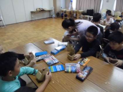 段ボールで入れ物だけでなくケースやテープを使わないでできる箱も作りました。
