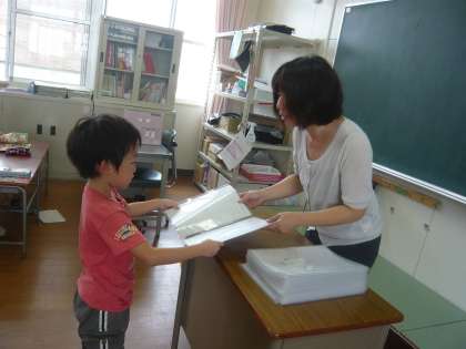 ちょうど、担任から通知表を手渡されているところでした。