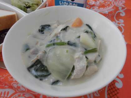 きのこのクリームシチューは、まろやかな味でとてもおいしくいただきました。