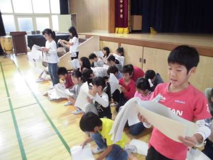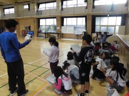 3年生は学習発表会に向けて、講堂で台本合わせをしていました。