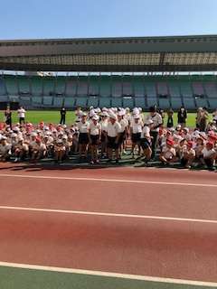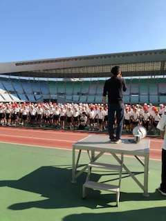 6年生が、第30回大阪市総合スポーツ交歓会に参加しています。今日はヤンマースタジアム長居へ生野区7校、住之江区3校の6年生が参加しています。