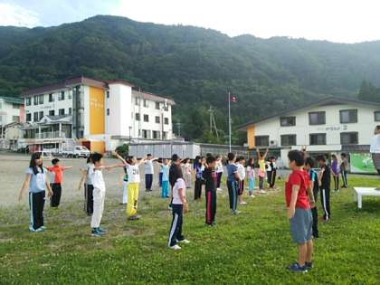 おはようございます。2日目の朝がきました。天気もよく、気温は20度くらいです。少し、肌寒いくらいです。みんな元気でラジオ体操をしました。
