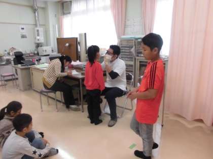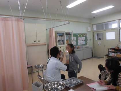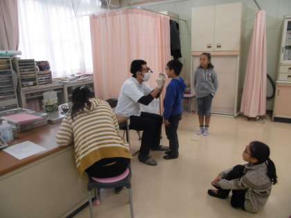 3年生の子どもが検診を受けていました。静かに検診を受けていました。