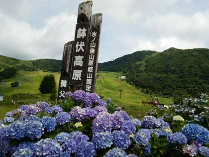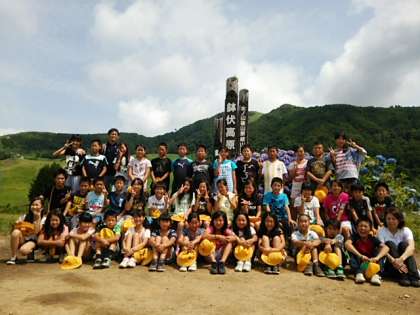 散策がてらに記念写真。鉢伏山をバックに。