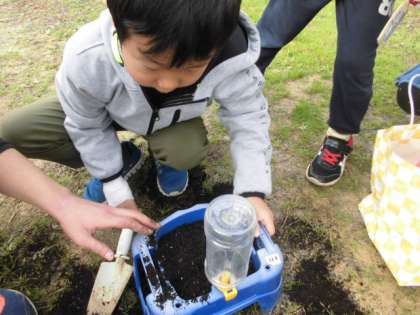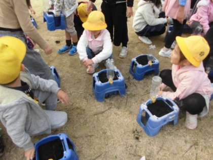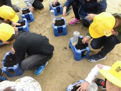 2年生が一人一鉢ずつ、スイセンの植え付けをしました。