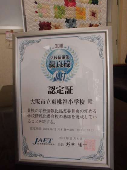 このたび東桃谷小学校が、日本教育工学協会から学校情報化優良校として認定されました。
