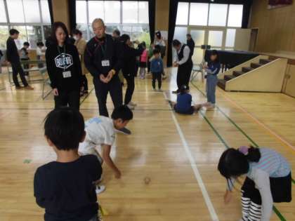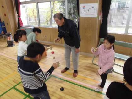 コマ回しやけん玉など、子どもたちは大きく6つのコーナーをローテーションして楽しみます。