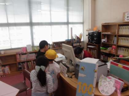 昼休みに図書室へ行くと、低学年を中心にどんどん集まってきました。