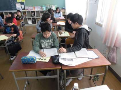 6年生の教室でも、通知表を一人一人に手渡していました。