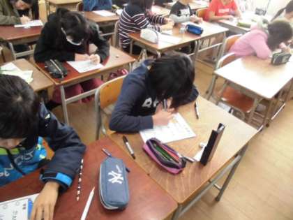 5年生は、3学期の学習と生活のめあてを各自で決めて、カードに書いていました。