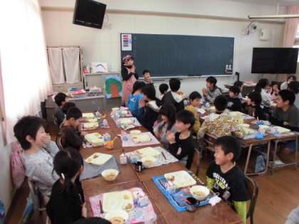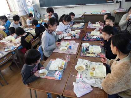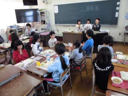それぞれの学年、学級の給食の作法にのっとって、交流給食を楽しんでいました。