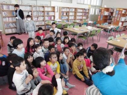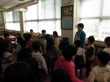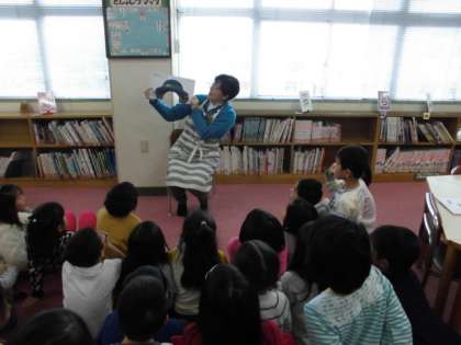 1年生の図書の時間は、本の返却・貸し出しと自由読書、そして、本の読み聞かせをしていただいたりしています。