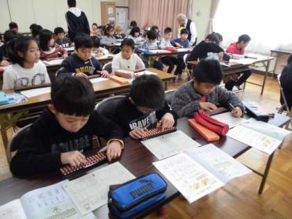 今年も3年生にそろばんの出前授業をしていただきました。