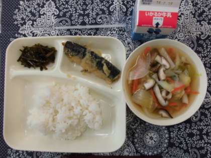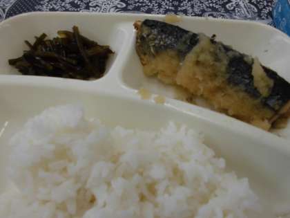 献立は、さんまのみぞれかけ、すまし汁、茎わかめのつくだ煮、ごはん、牛乳でした。