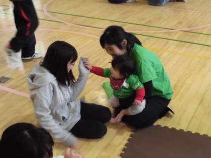 8組のお母さんと赤ちゃんに来ていただき、5・6年生は混成で8グループに分かれて、それぞれに交流しました。
