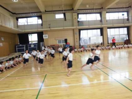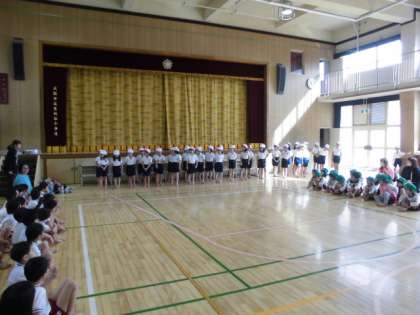 今年も、鶴橋幼稚園のまつ組、東桃谷幼児の園のきりん組の子どもたちに東桃谷小学校へ来てもらって、幼・保・小交流会を講堂で行いました。