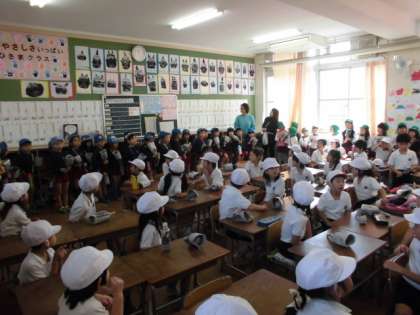 その後、1年生の教室に来てもらって、教室の様子や1年生の授業ですることを紹介したり、いろいろ質問のコーナーをしたりして、4月に小学生になるという期待感をふくらませてもらいました。