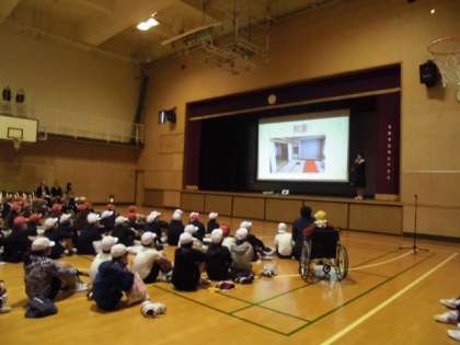 4月からの桃谷中学校開校ということで、6年生は北鶴橋、鶴橋、勝山、東桃谷の4小学校から集まり、小中交流会を勝山中学校で行われました。