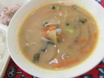 みそ汁は、サツマイモや豚肉、にんじんなども入っていたので、豚汁と思っていました。どちらにしても出汁も効いており、とてもおいしくいただきました。