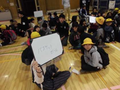 今朝の児童集会は、ジェスチャーから何をしているかを当てる活動をしました。
