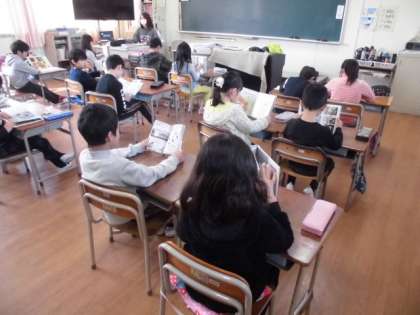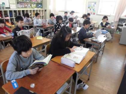 2年生は、各自が教室の本を選んで静かに自由読書をしていました。