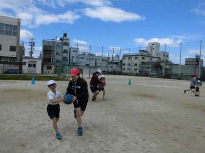 グループを組んで競争したり、ペアでリレー形式で競争したりして楽しんでいました。
