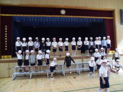 講堂で、1年生が次年度の入学式で行う新入生を迎える演技等の練習をしていました。