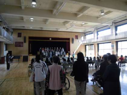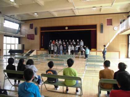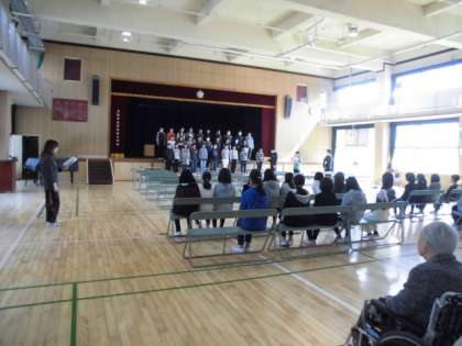 卒業式に向けて、5・6年生が講堂で練習している様子を初めに見学していただきました。
