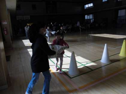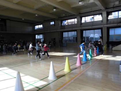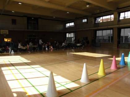 講堂で狭いとは思いましたが、子どもたちはぶつかることもなくうまく運んでいました。