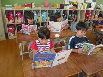東桃谷小学校では、火曜日と木曜日の朝の時間(8:30〜8:45)に全校読書タイムを設定しています。各自が学校・学級の本や家から持ってきた本を読む時間です。