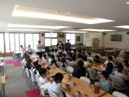 ハチ高原での最初の食事は、「牛丼」です。お腹のすいた子どもたちは、大喜び。「いただきます!」にも力が入りました。