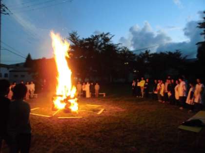 子どもたちは、火の神より、聖なる火、「責任の火」、「自主の火」、「協力の火」そして、「友情の火」を授かり、その聖なる火を中心に、思いっきりキャンプファイヤーを楽しみました。