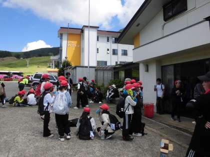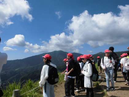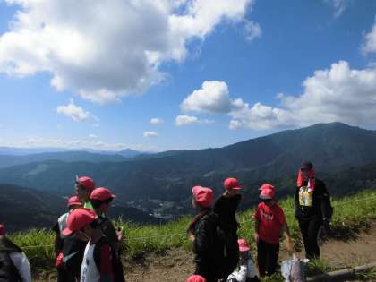 頑張って登頂です。みんなで頑張れた達成感でいっぱいです。みんなの笑顔がはじけました。
