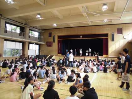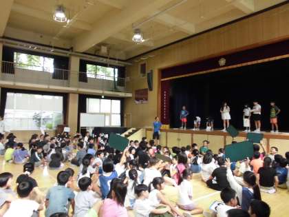 今週の児童集会は、班対抗の「名前あてクイズ」大会でした。有名人の名前の文字を一文字一文字ばらして、並べていき、名前を組み立てるというルールです。朝から、頭の体操でした。どの班も、すぐに回答をみちびきだしていました。