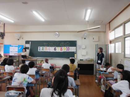 4年の外国語の学習の様子です。「いま何時?」を学習中でした。ゲーム形式で、楽しく授業が進められていました。