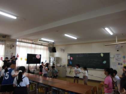 本日、「ひがももカーニバル」が盛大に行われました。東桃谷小学校の行事としては、最後のカーニバルになります。いつもと同じ、たてわりグループで、思いっきり楽しみました。今日は、勝山小学校の児童や、幼児の園の園児たちも遊びに来ていただき、カーニバルを盛り上げてくれました。