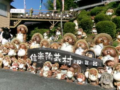 予定通り、10時に陶芸村に到着しました。数えきれないタヌキが出迎えてくれました。