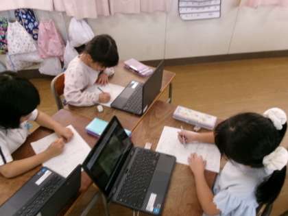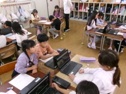 1年の生活科、「秋のいきものかんさつ」の学習の様子です。今日は、パソコンを使って、「あかとんぼ」の観察をしました。みんな上手にパソコンを使いこなしていました。
