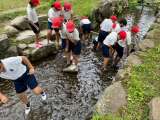 魚つかみが終わり、記念写真の後は、食材探しオリエンテーリングです。 グループで協...